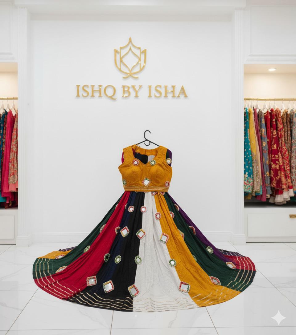 Garba Print Lehenga |Multicolored Ethnic Skirt | Navratri Ghagra Choli | Handmade Indian Festival Outfit