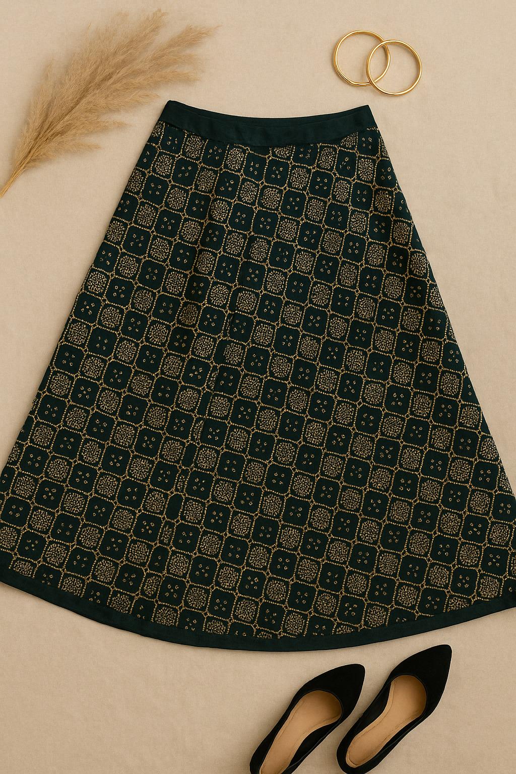 Handcrafted Designer green golden zari work Skirt | Ethnic Partywear | Ishq by Isha